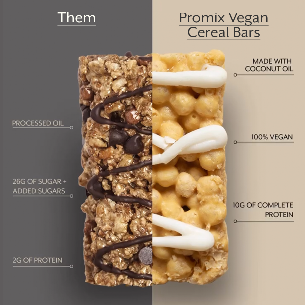 Layout: Split screen comparison. Left half: Clean white background. Right half: Muted pale yellow background (#F0F078).