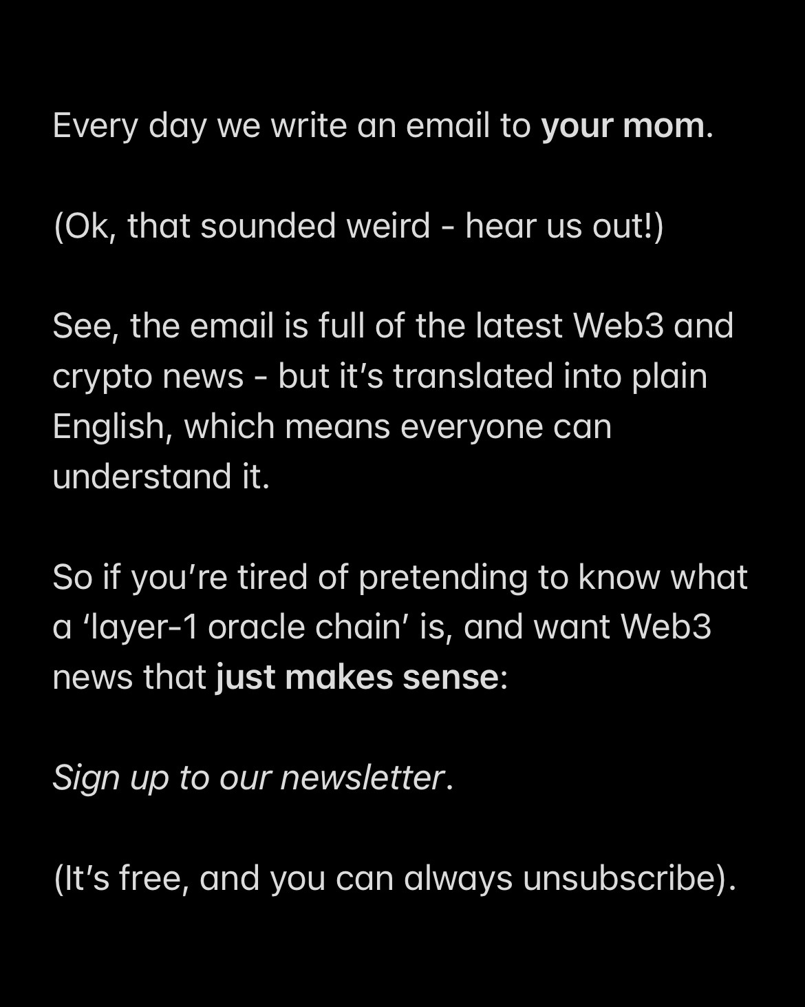 - Angle : Us vs. Them (Nous contre Eux). La marque ne vend pas juste un service, elle vend l'appartenance à un groupe de personnes "éveillées" qui ne se laissent plus duper par les médias classiques.
