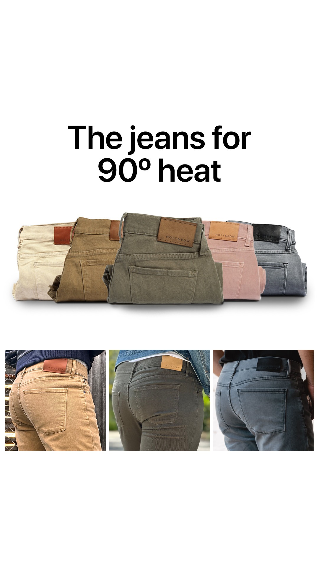 - Réaction visée : Curiosité ("Comment un jean peut-il être confortable à 32°C ?").