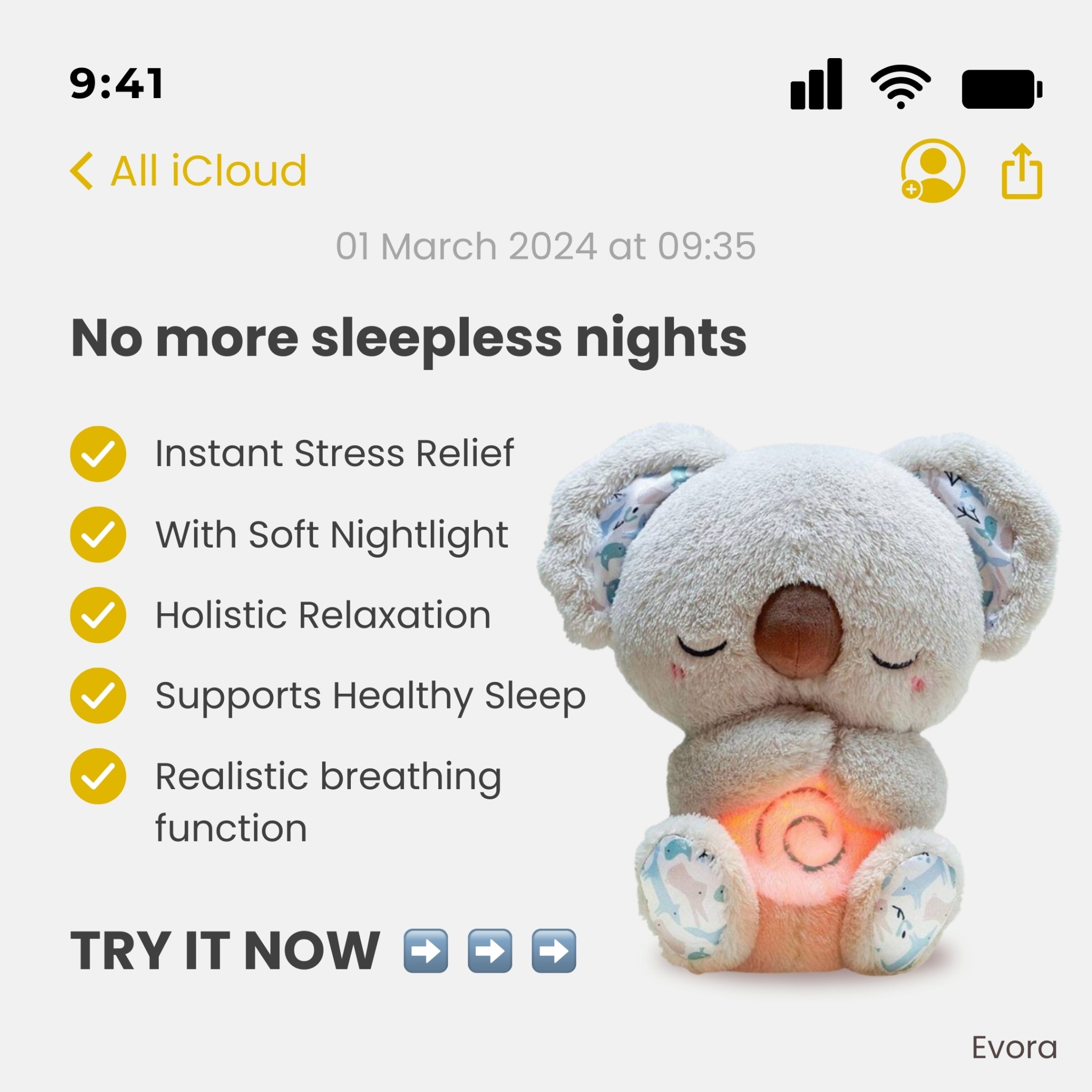 - Texte à l'écran : Central. Les Post-its servent de balises de lecture. Ils forcent l'œil à se poser sur l'argument de vente en même temps que sur le produit.