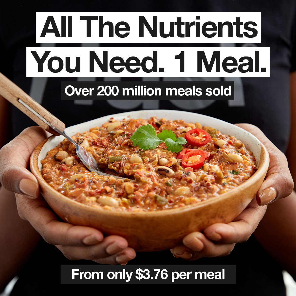 - ADN Brand : Huel utilise son code couleur signature : Noir et Blanc. C'est sobre, fonctionnel, presque "médical" ou "tech", ce qui renforce l'idée de "nourriture complète optimisée".