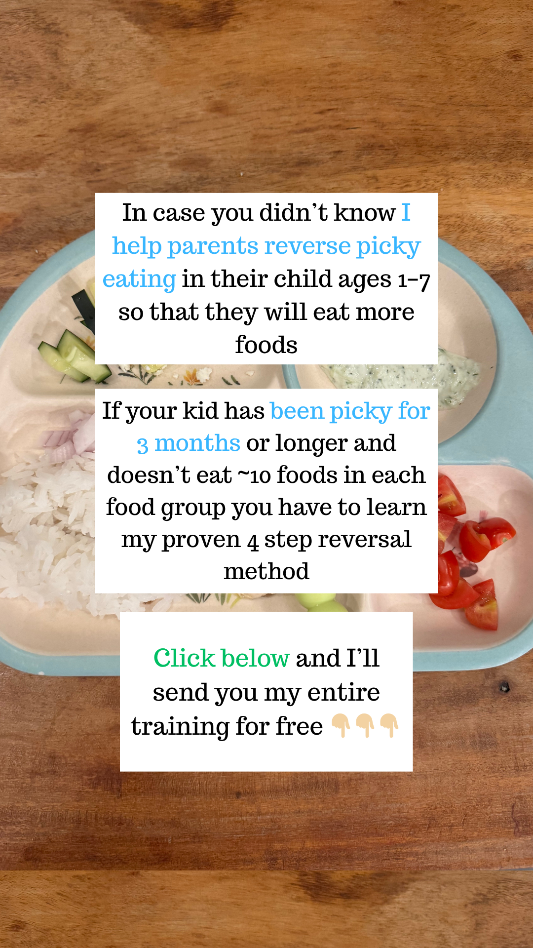 Inside my free training, I’ll show you my proven 4-step reversal method that’s helped 10,000+ families finally enjoy mealtimes again. 💕